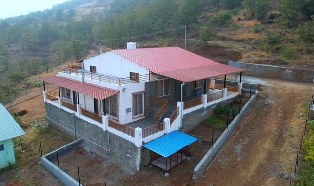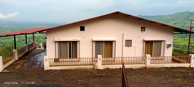 Sachin Jaywant given a honour to design us his dream home . Which represents a peaceful agrarian life, but at the same time it serves as a home base for its activity, hence connected to productivity. The form of this type of home is highly adaptable. It is 2200 sq.ft with various facilities like rain water harvesting with filtration, modern kitchen, spacious rooms and garden with various trees. Farmhouses can easily be expanded because their basic shapes make it easy to add gazebo and parking. The farmhouse is constructed in such a way that Riverview is clearly visible. The Purandar fort is on the East direction of the farmhouse.