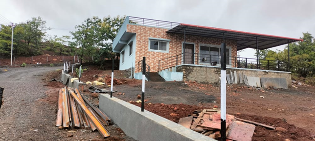 Suresh Rao has built a elegant and yet simple farm house. It represents a peaceful agrarian life, but at the same time it serves as a home base for its activity, hence connected to productivity. The form of this type of home is highly adaptable. It is 1200 sq.ft with various facilities like rain water harvesting with filtration, modern kitchen, spacious rooms and garden with various trees. Farmhouses can easily be expanded because their basic shapes make it easy to add gazebo and parking. The farmhouse is constructed in such a way that Riverview is clearly visible. The Purandar fort is on the East direction of the farmhouse.